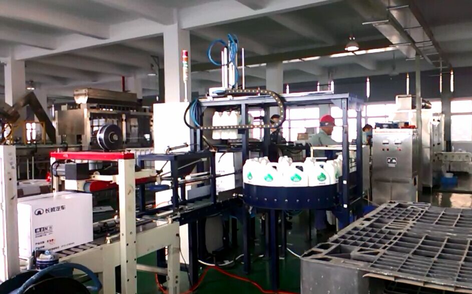 自动包装流水线:由自动排队传输线—摆瓶装置—自动开箱机—自动装箱机—自动封箱机—自动码垛机组成,应用于饮品,油料,化工等瓶装,灌装包装